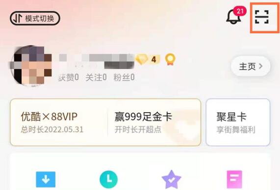 3、打开手机优酷,点击“扫一扫”扫描电脑端的二维码即可