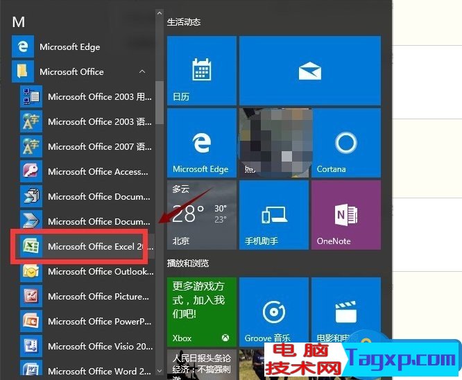 2、点击你的程序列表,单独开启Excel文档程序,如下图所示: