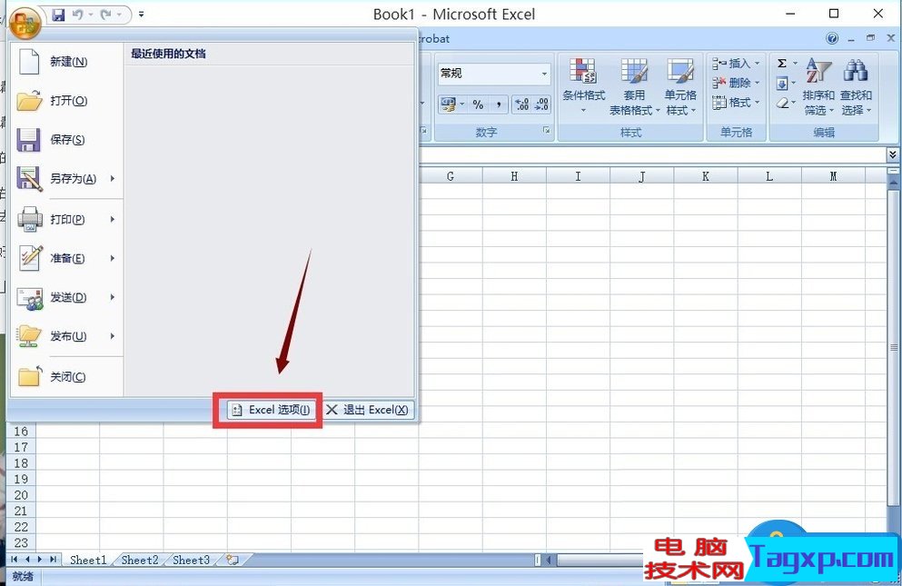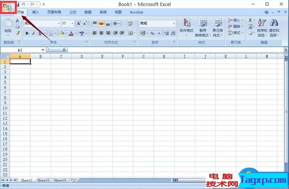 3、点击Excel的菜单按钮,如下图所示:
