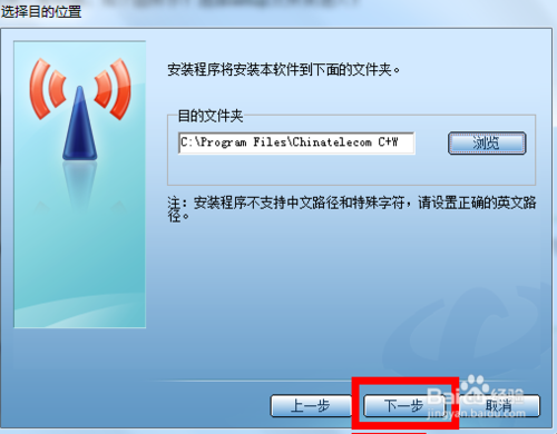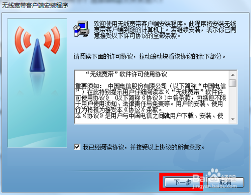 在setup文件下,双击chinanet安装文件开始安装,这个是无线上网管理户端!如下图所示!