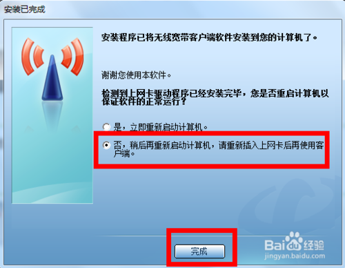 安装过程参考下面的几个截图,完成安装后。不要选择立即重启!然后客户端已经自动运行了!
