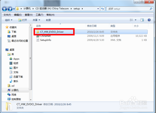 回到第四部的setup文件夹,选择CT_HW_EVDO_driver文件夹进入,现在我们要开始安装网卡驱动!