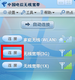 启动你的无线宽带!点击3G前面的连接即可!如下图所示!如果连接不成功你可以试试升级客户端软件,关于最新版本的管理客户端你可以在官网下载升级!