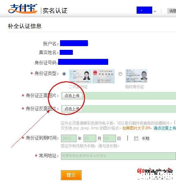 1、登陆支付宝实名认证,上传证明自己的文件