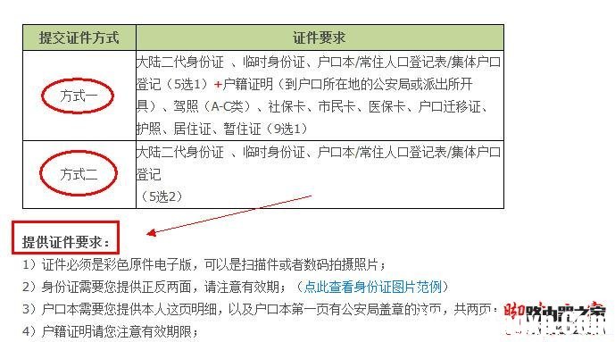 3、请注意证件要求,如下面的截图显示: