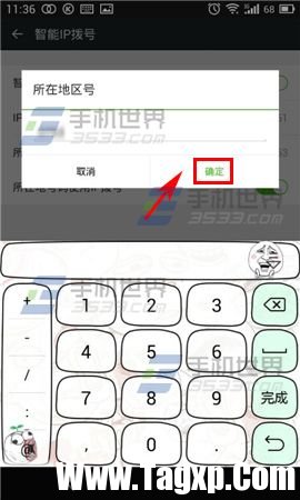 4)输入你的地区号后按【确定】就可以了。(如下图)