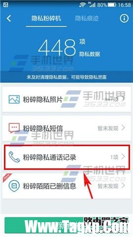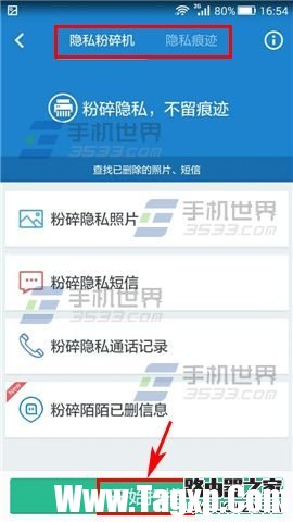 2)选择【隐私粉碎机】或者是【隐私痕迹】,此处以【隐私粉碎机】为例,点击【开始扫描】,等待扫描完成后点击要粉碎的选项,比如【粉碎隐私通话记录】;(如下图)