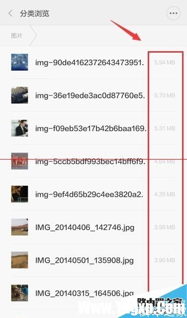 4、接下来我们可以进入到图片、音乐、视频这里面,先按照文件大小排序吗,然后有选择性的删除一些自己用不到的图片视频音乐。像我这几张图片都有4——6M大小,是很费内存的。