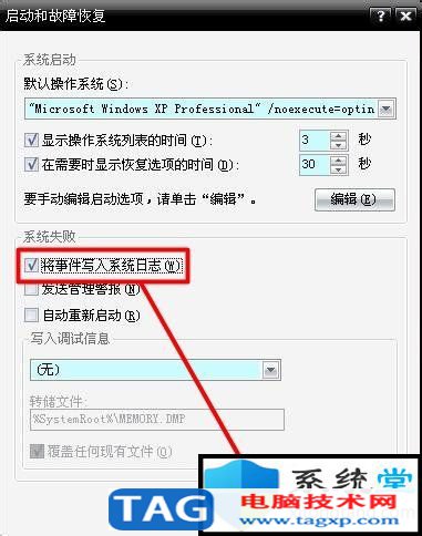 控制面板→系统→高级→启动和故障恢复→系统失败→勾选将事件写入系统日志→确定。
