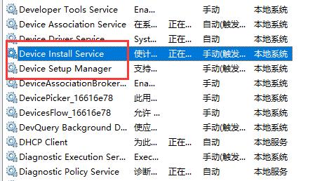 3、在其中找到“Device Install Service”和“Device Setup Manager”服务,分别双击打开。