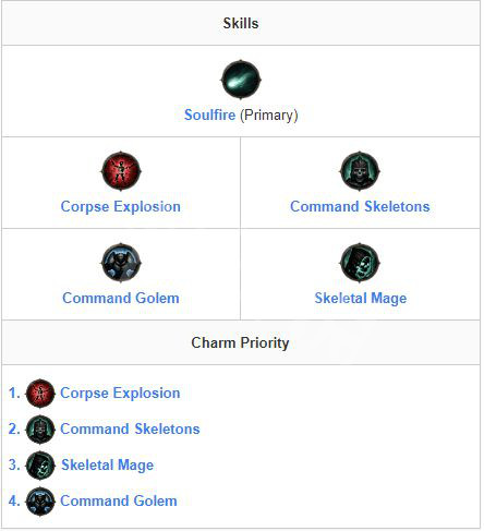 召唤一个无法移动的骷髅法师,持续 13 秒,向一个方向投掷灵魂之火,每一个对灵魂之火路径上的所有敌人造成 X 点伤害。你不能指挥超过 6 个骷髅战士和骷髅法师。
