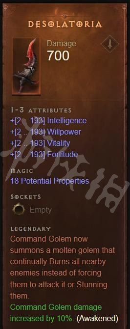 魔像将转变为火焰魔像,使其拥有DOT伤害,但失去嘲讽和晕眩敌人的能力。