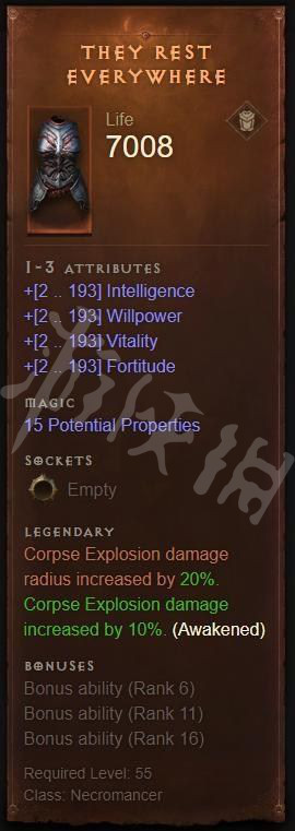 核心传奇之一,增加尸爆的伤害范围,配合传奇护肩可让毒气范围变广。