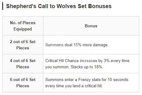 最适合本流派的套装,可以让召唤物伤害更高。每进行一次召唤就叠加爆击率,最高至18%。