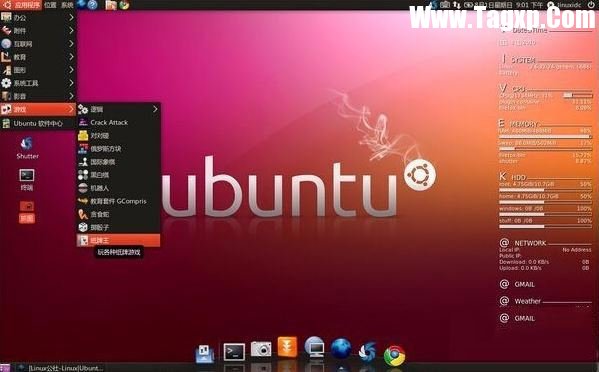 注:Ubuntu的许多操作是在终端中进行的,通过sudo命令管理的文件是由root持有权限的,一般用户是无法改变的。在图形界面上,我们可以通过属性中的权限选项夹进行操作。但是一旦文件的属性显示当前用户没有读写权力时,无法在图形界面上修改权限。