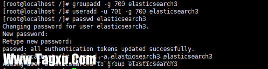 groupadd -g 700 elasticsearch3——新建用户组,组名叫elasticsearch3