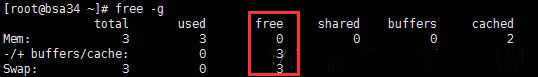 当观察到free栏已为0的时候,表示内存基本被吃完了,那就释放内存吧。