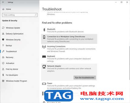 • 在“查找和解决其他问题”部分下,找到并选择“网络适配器”,单击“运行疑难解答”。