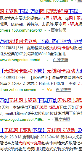 3.接着下载安装无线网卡驱动,在百度中输入无线网卡的型号,下载相应的驱动安装驱动程序。