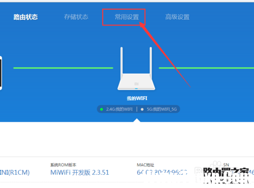 2、登陆网页版本以后,点击路由器后台管理主页面中的“常用设置”菜单选项,如下图所示。