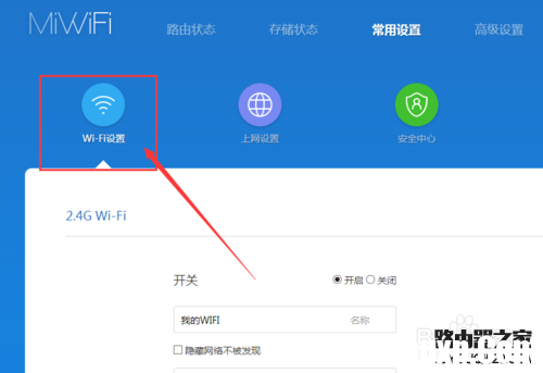 3、进入常用菜单设置页面以后,点击页面中的第一个设置选项,也就是“WiFi设置”选项,在该设置选项的页面最下方就有访客Wifi设置项目啦。