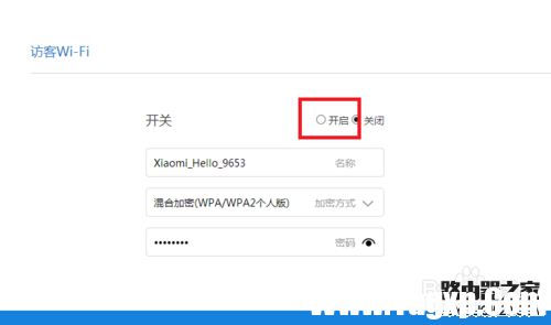 4、点击页面中的访客wifi网络设置选项,然后便可以开始相关的设置,由于默认访客wifi网络是处于关闭状态的,所以,我们得先打开开关按钮,使访客wifi网络处于开启状态。
