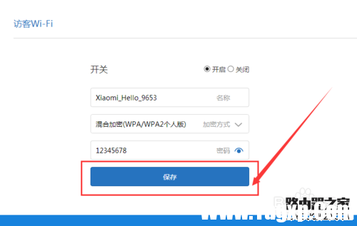 5、在开启了访客wifi网络之后,接下来就是设置密码的问题了,既然你已经将该网络设置为访客网络,建议使用开放网络,不要使用密码,不然容易忘记。不过就算是要使用加密的话,默认密码是12345678,不建议大家修改。当然还涉及到一个网络名称的问题,建议保持默认名称,当然你也可以选择进行修改。