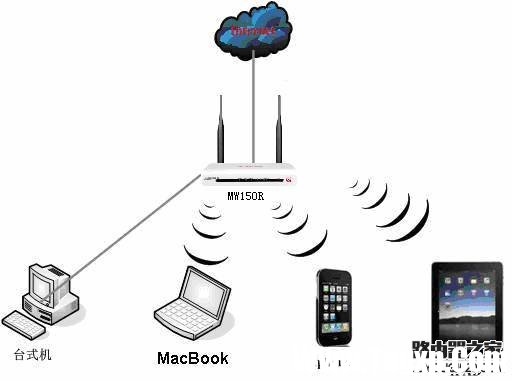 说明:无线路由器相当于一台有线路由器加一个无线发射的小型“基站”,可以同时满足有线电脑、无线的笔记本、平板电脑等终端同时接入共享宽带上网。