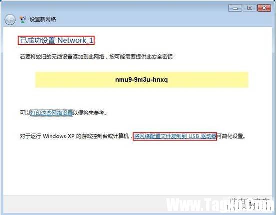 5. 在上图中,若点击“将网络配置文件复制到USB驱动器”,可以将无线配置程序复制到U盘。若其他Win7和Vista系统的电脑要连接此无线路由器,可以将该U盘插入其电脑USB接口,运行U盘中无线配置程序,即可自动连接到无线网络,连接过程如下图所示。