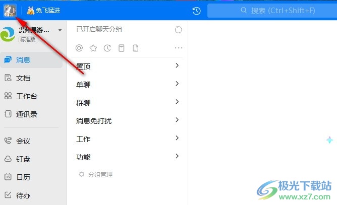 1、第一步,我们在电脑中点击打开钉钉软件之后,再在钉钉页面中找到自己的头像,点击打开头像,打开菜单
