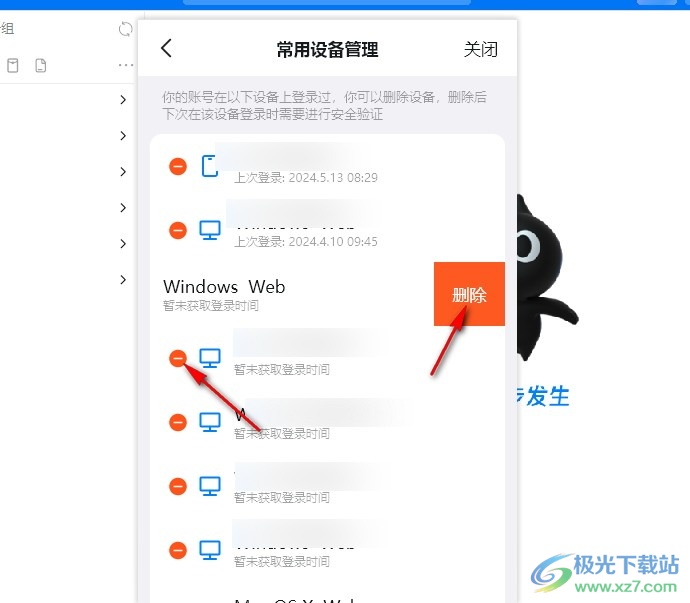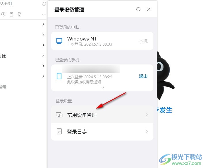 3、第三步,进入登录设备管理页面之后,我们在该页面中可以点击“退出”选项,退出正在登录的设备,也可以点击“常用设备管理”选项