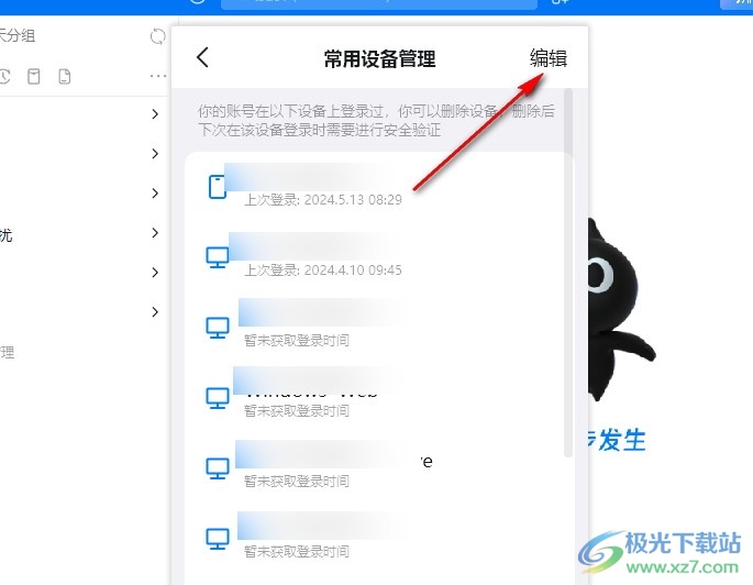 4、第四步,进入常用设备管理页面之后,我们在该页面中找到“编辑”选项,点击打开该选项