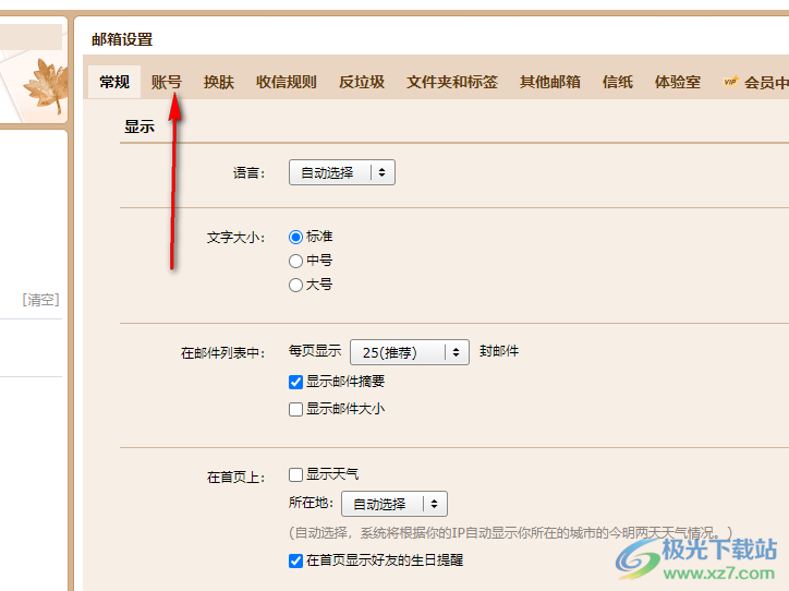 3.随后,我们即可进入到设置窗口中,在该窗口页面上有一个【账号】选项卡,我们将其点击打开。