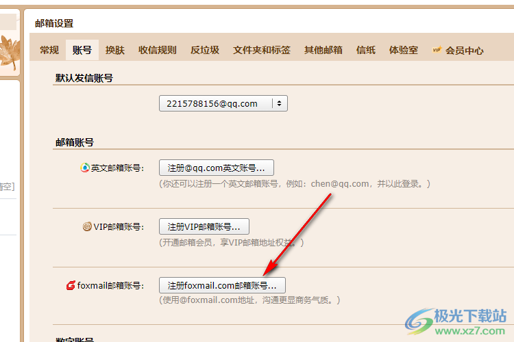 foxmail邮箱是一个非常重要的邮箱工具,有的小伙伴目前还没有拥有属于自己的Foxmail邮箱账号,因为很多小伙伴不知道如何创建一个Foxmail邮箱账号,其实很简单的,如果你qq账号,你可以进入到自己的qq邮箱中,找到账号设置的功能,在账号设置的页面上就可以找到Foxmail注册的功能,在注册该邮箱账号的时候,会有相应的提示步骤帮助你注册,下方是关于如何使用qq注册Foxmail邮箱账号的具体操作方法,如果你需要的情况下可以看看方法教程,希望小编的方法教程对大家有所帮助。