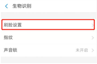 3、在生物识别的界面中,可以看到第一个就是刷脸设置,点击刷脸设置,进入刷脸设置的界面。