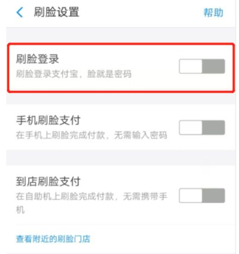 4、如果开通了支付宝刷脸登录的朋友,点击一下刷脸登录的按钮,就可以关闭支付宝刷脸登录了,如果是没有开通的用户,点击一下就可以开通刷脸登录。
