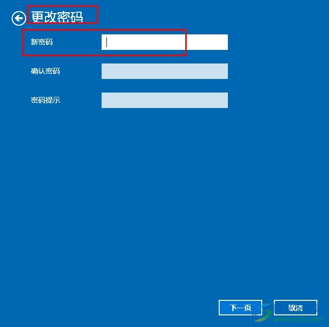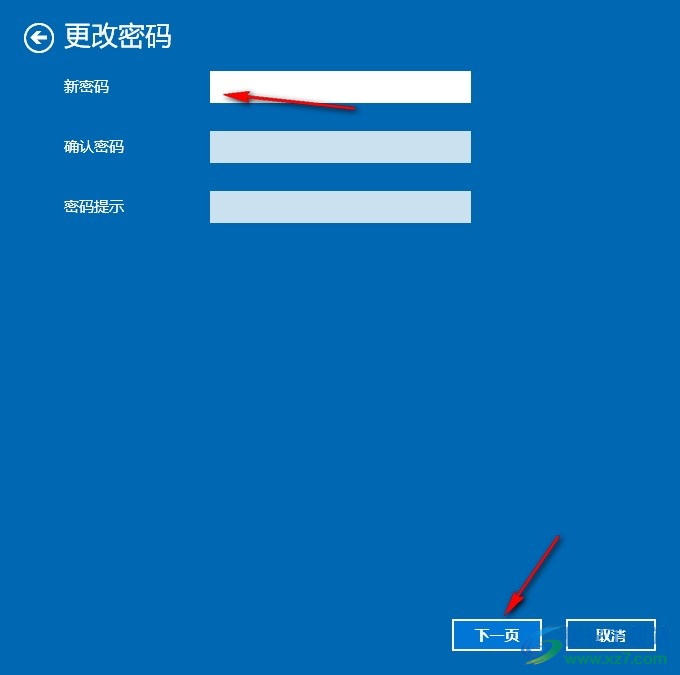 5、第五步,在下一页页面中我们不用填写新密码,使其保持空白,然后点击下一页选项,最后再点击完成选项即可