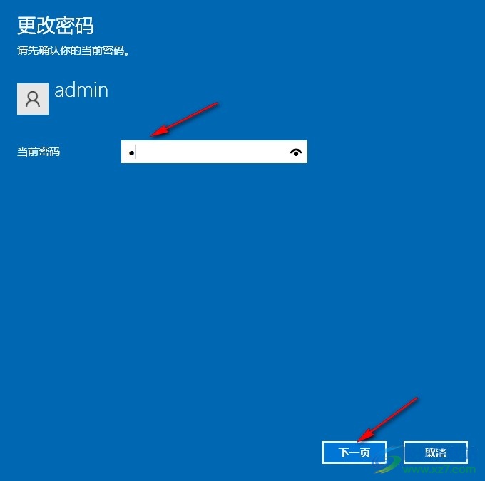 4、第四步,进入更改密码页面之后,我们在该页面中先输入原本密码,然后点击下一页选项